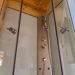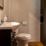 Zur Ausstattung des Badezimmers gehören auch eine getrennte Toilette und eine Dusche. Es gibt Handtücher für den Komfort der Gäste.
